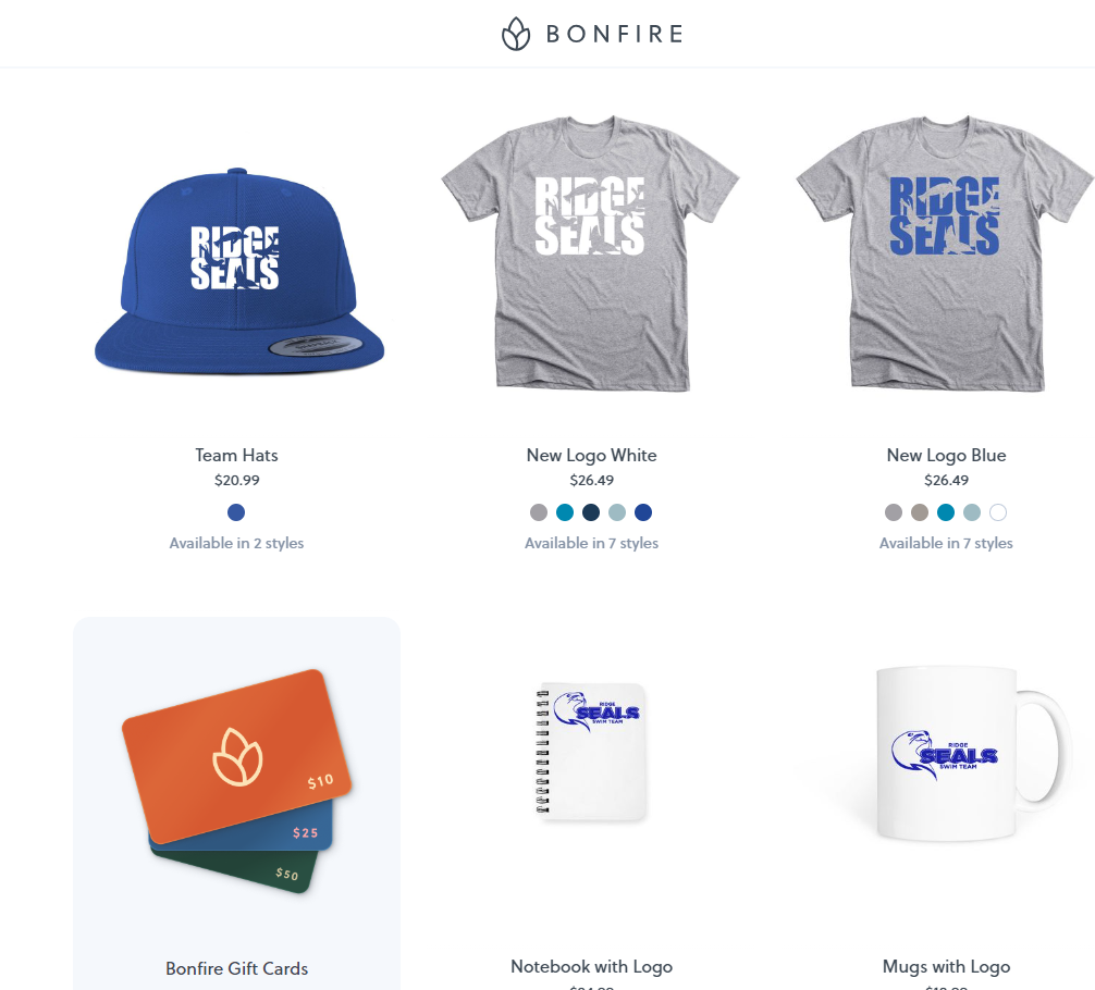 Each registered swimmer will receive a team shirt with sponsor logos, however, you may also purchase other spirit wear and accessories at our online Bonfire store. (right click and choose open in new tab) All proceeds benefit our team. Thank you!